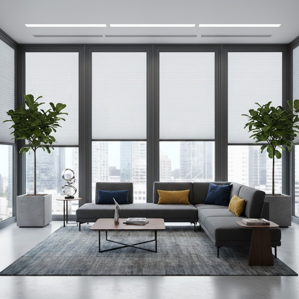 Tavan pencerelerinden gelen ışığın kontrol altına alınması için tasarlanmıştır. Gün ışığını filtrelerken mekân estetiğini korur.